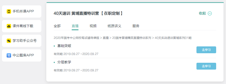 ① 學(xué)員購(gòu)買直播課程之后,使用賬號(hào)登陸學(xué)習(xí)中心(xue.eoffcn.com)