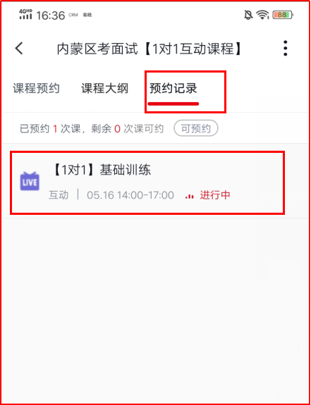 登錄預(yù)約系統(tǒng),選擇"預(yù)約記錄",點(diǎn)擊當(dāng)天日期的課程,即可進(jìn)入教室,請(qǐng)盡量提前10分鐘登錄進(jìn)入教室,以防遇到臨時(shí)問題耽誤上課。