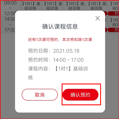 2.選擇自己想約的課,點擊“預約”,預約之后再次確認