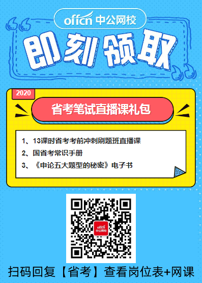 ![]() 廣東中公網(wǎng)校公眾號(gdzg999)領(lǐng)資料包 掃碼回復【省考】0元領(lǐng)筆試網(wǎng)課 |