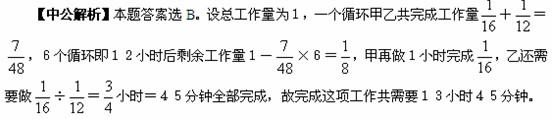 單獨(dú)完成某項(xiàng)工作,甲需要16小時,乙需要12小時,如果按照甲、乙、甲、乙、……的順序輪流工作,每次1小時,那么完成這項(xiàng)工作需要多長時間?