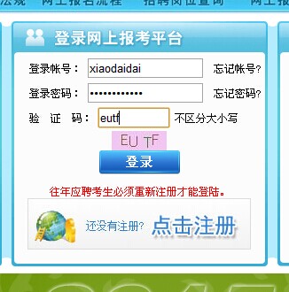 本系統(tǒng)以應(yīng)聘考生本人注冊設(shè)置的帳號和密碼作為登錄的依據(jù),應(yīng)聘報考人員請保管好自己的帳號和密碼,否則他人誤用造成的后果,考生需自行承擔(dān)任何責(zé)任。