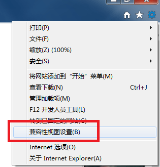 以IE11為例:選擇IE11瀏覽器的工具選項,然后選擇兼容性視圖設置,如下圖所示