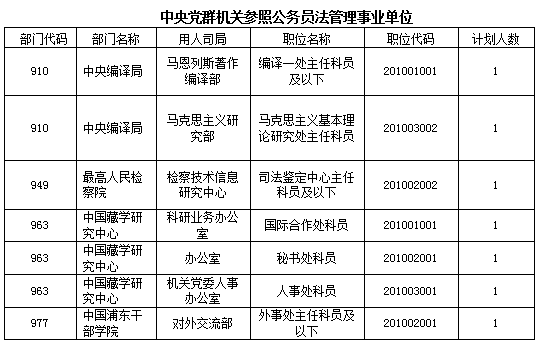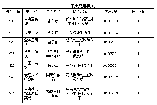 中公網(wǎng)校專家分析,參照公務(wù)員法管理事業(yè)單位無人報考職位主要集中在銀監(jiān)會等;中央國家行政機(jī)關(guān)省級以下直屬機(jī)構(gòu)無人報考職位主要集中在海關(guān)、鐵路公安等;中央國家行政機(jī)關(guān)(本級)無人報考職位主要集中在科技部、公安部、國稅總局等;中央黨群機(jī)關(guān)無人報考職位主要集中在中宣部、全國工商聯(lián)等;中央黨群機(jī)關(guān)參照公務(wù)員法管理事業(yè)單位無人報考職位主要集中在中央編譯局、中國藏學(xué)研究中心等;中央黨群機(jī)關(guān)參照公務(wù)員法管理人民團(tuán)體和群眾團(tuán)體無人報考職位只有三個,分別來自中國科協(xié)、中國文聯(lián)、中國人民對外友好協(xié)會。
