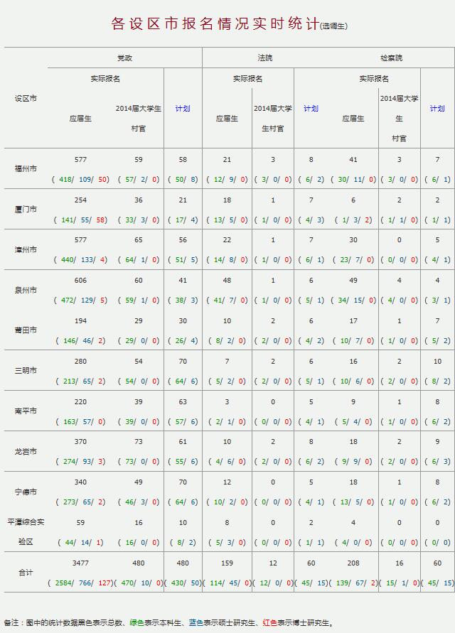2016福建選調(diào)生考試報(bào)名情況(截止12月4日17時(shí))