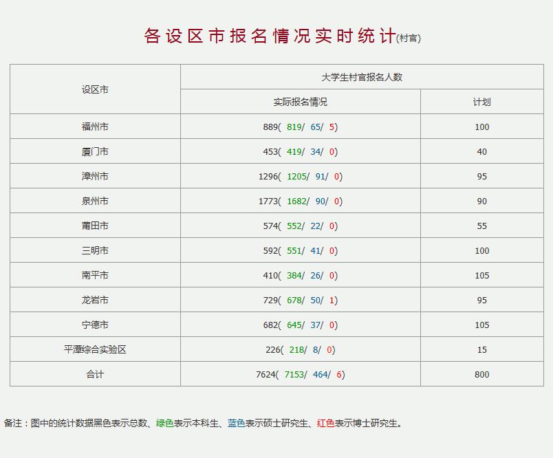 2016福建大學(xué)生村官考試報(bào)名情況(截止12月10日15時(shí))