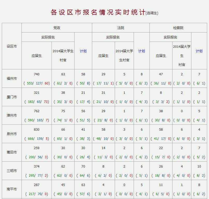 2016福建選調(diào)生考試報(bào)名情況(截止12月11日13時(shí)45分時(shí))