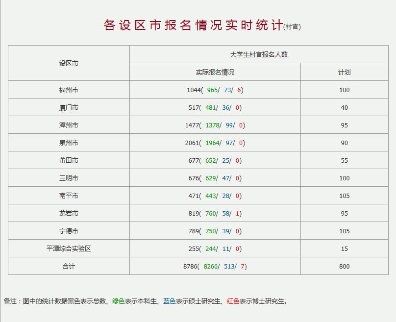 2016福建大學(xué)生村官考試報(bào)名情況(截至報(bào)名結(jié)束)