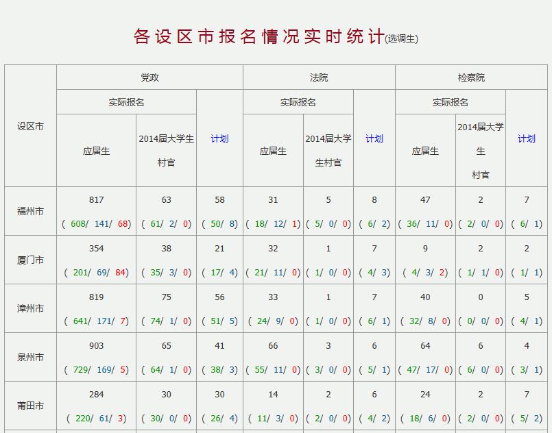 2016福建選調(diào)生考試報名情況(截止報名結(jié)束)