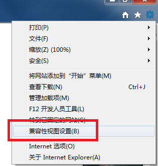以IE11為例:選擇IE11瀏覽器的工具選項(xiàng),然后選擇兼容性視圖設(shè)置,如下圖所示