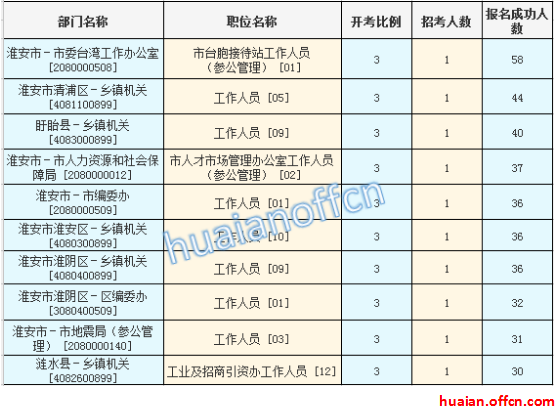 淮安市考報(bào)名人數(shù)最多的十大職位