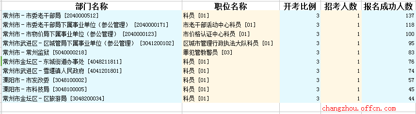 常州省考報(bào)名競(jìng)爭(zhēng)最激烈的十大職位