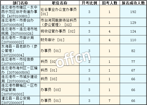 連云港公務(wù)員考試報名人數(shù)最多的十大職位