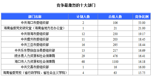 為幫助廣大考生更清晰的了解今日報名情況,中公網(wǎng)校整理了報名人數(shù)前十位的部門以及競爭比例最激烈的十大部門,供廣大考生參考: