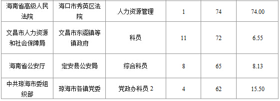 截止15日16時,招錄比例的職位為海南省高級人民法院海口市秀英區(qū)法院人力資源管理一職,招錄1人,截止15日16時通過人數(shù)為74人。