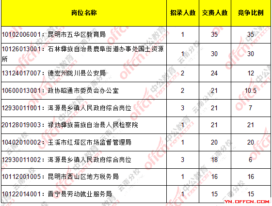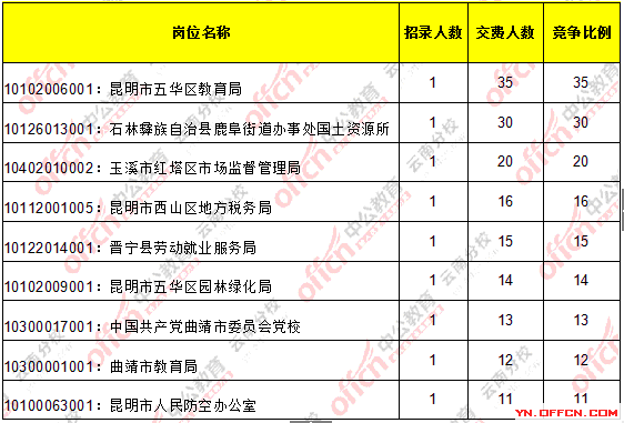 截止3月18日9時,招錄比例的職位為昆明市五華區(qū)教育局,招錄1人,截止18日9時通過人數(shù)為35人,具體信息如下: