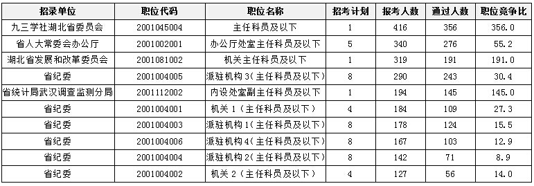 詳細(xì)數(shù)據(jù)請(qǐng)下載:2016年湖北省公務(wù)員考試省直機(jī)關(guān)各職位報(bào)考情況(3月26日10時(shí)).xlsx