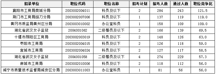 競(jìng)爭(zhēng)比例的十個(gè)職位如下: