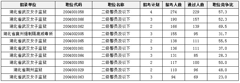 競(jìng)爭(zhēng)比例的十個(gè)職位如下: