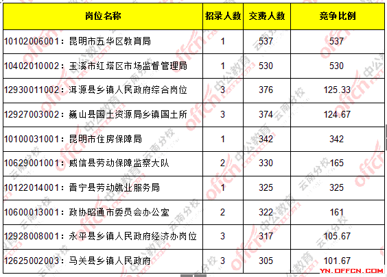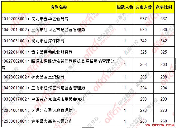 2016云南省考繳費(fèi)人數(shù)達(dá)110365人,最熱職位537:1_截止22日22時(shí)