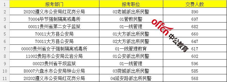 二、人民警察職位報(bào)名人數(shù)職位分析