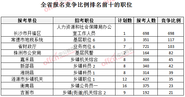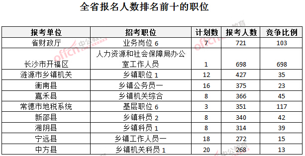 截止26日17時,湖南全省報名人數(shù)排名的前三個職位,位次為