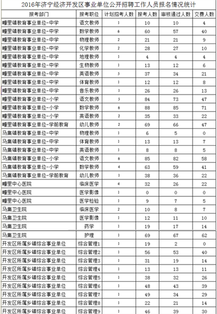 2016山東濟寧經(jīng)濟開發(fā)區(qū)事業(yè)單位招聘報名情況
