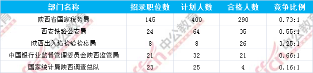 為幫助廣大考生更清晰的了解今日?qǐng)?bào)名情況,陜西中公網(wǎng)校整理了審核通過人數(shù)前幾位的部門以及競爭比例最激烈的幾大部門,供廣大考生參考: