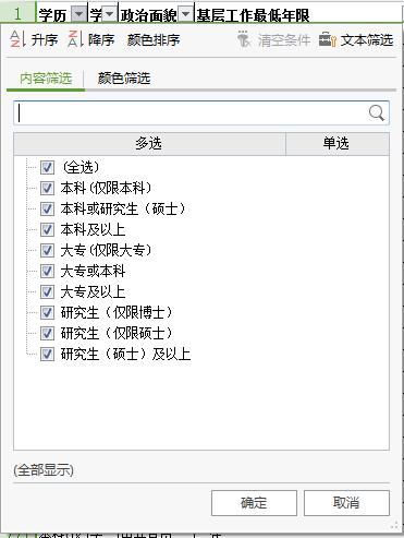 學(xué)歷對于報名國考的各位考生是一條“硬杠”,因此及時篩選出與自己條件相符的職位能讓考生更方便的進一步挑選職位。同樣對職位表中學(xué)歷要求一列進行篩選,可以發(fā)現(xiàn)學(xué)歷要求主要包括大專、本科、研究生三個層次??忌趫罂紩r要注意各學(xué)歷要求后面附帶的“僅限”和“及以上”兩種條件之間的區(qū)別,對比自身條件,謹(jǐn)慎報考。