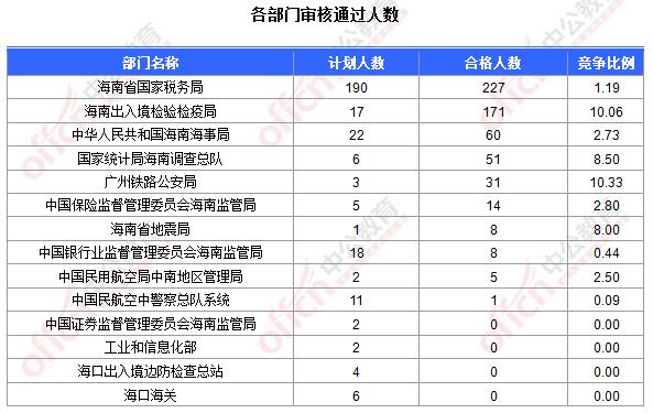 為幫助廣大考生更清晰的了解今日?qǐng)?bào)名情況,海南中公網(wǎng)校整理今天各部門的報(bào)名情況供廣大考生參考: