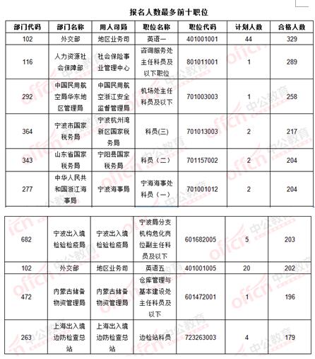 外交部地區(qū)業(yè)務(wù)司英語一(職位代碼401001001)這一職位此時(shí)仍穩(wěn)坐報(bào)名人數(shù)人氣榜單首位,目前已經(jīng)有329人報(bào)名,與昨日此時(shí)相比增加了262人,而亞軍、季軍位置均發(fā)生顛覆性變化,人力資源社會(huì)社會(huì)保險(xiǎn)事業(yè)管理咨詢服務(wù)處主任科(職位代碼401001001)取代上海出入境邊防檢查總站邊檢站科員躍居亞軍,中國民用航空局華東地區(qū)管理局中國民用航空浙江安全監(jiān)督管理局機(jī)場(chǎng)處主任科員及以下這一職位取代外交部地區(qū)業(yè)務(wù)司英語五,上升至第三名,說明人氣職位榜風(fēng)云變幻比較大,未來到底哪個(gè)職位能夠成為“人氣之星”,我們拭目以待。