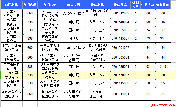 報(bào)名通過審核人數(shù)前十的職位主要集中在江蘇省國家稅務(wù)局、江蘇出入境檢驗(yàn)檢疫局、江蘇省地震局等部門,具體信息如下: