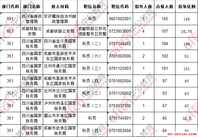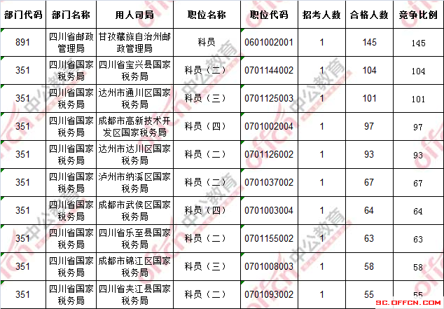 首日?qǐng)?bào)名通過審核人數(shù)前十的職位主要集四川省國(guó)家稅務(wù)局等部門,具體信息如下: