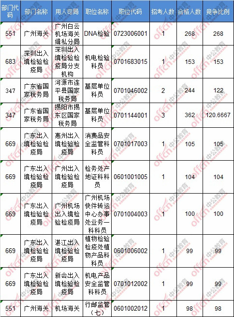 截止到18日8時,工作地點在廣東的職位共有188個無人報考,占全部職位的1.1%。下面是無人報考職位一覽表,中公網(wǎng)校專家建議廣大考生多關(guān)注一些較冷職位,避免激烈競爭,結(jié)合自身條件,找到屬于自己的職位。