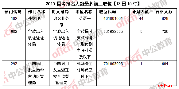 在報名人數(shù)最多前三職位中,中國民用航空局華東地區(qū)管理局中國民用航空浙江安全監(jiān)督管理局機(jī)場處主任科員及以下(職位代碼701003003)取代昨日的福建省南安市國家稅務(wù)局基層分局科員二這一職位,躋身前三甲,實(shí)力不容小覷。