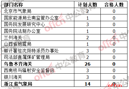 與國稅的程度形成鮮明對比的是,目前仍有12個部門“無人問津”,其中,烏魯木齊海關(guān)招錄26人、浙江省氣象局招錄14人,仍處于觀望態(tài)勢的考生可以重點(diǎn)考慮。