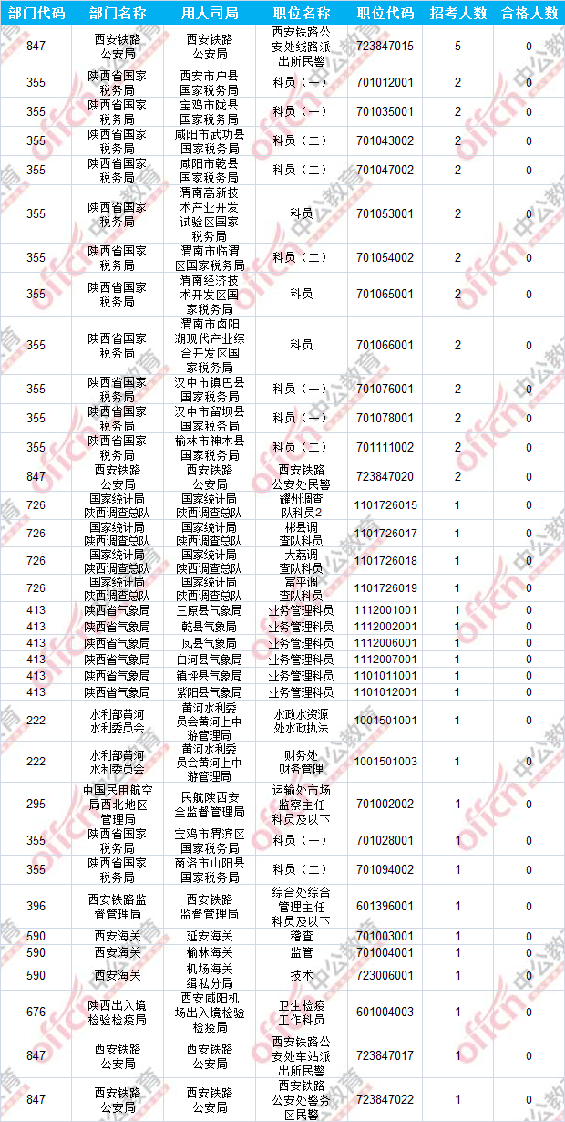 截止到19日8時(shí),工作地點(diǎn)在陜西的職位共有35個(gè)無(wú)人報(bào)考,占全部職位的12.4%。下面是無(wú)人報(bào)考職位一覽表,中公網(wǎng)校專家建議廣大考生多關(guān)注一些較冷職位,避免激烈競(jìng)爭(zhēng),結(jié)合自身?xiàng)l件,找到屬于自己的職位。