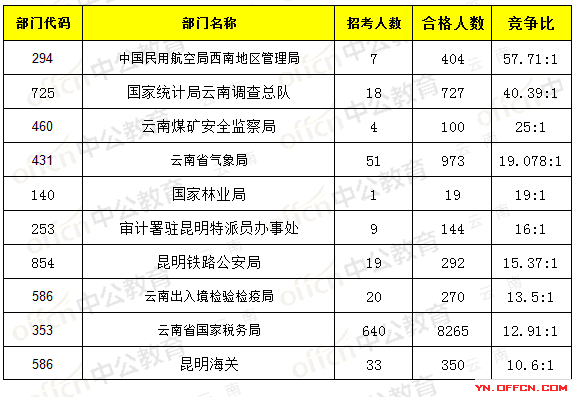 為幫助廣大考生更清晰地了解今日報名情況,云南中公網(wǎng)校整理了審核通過人數(shù)部門排名,供廣大考生參考:
