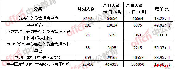 各系統(tǒng)競爭比排名沒有發(fā)生變化,中央黨群機關參照公務員法管理事業(yè)單位依舊占據(jù)首位,競爭比最激烈,目前已達:50.37:1,中央黨群機關緊隨其后,競爭比為49.92:1,以上數(shù)據(jù)說明,考生們進入中央部委的愿望比較強烈,但中央機關職位采用副省及以上試卷,難度要高于地市級試卷,考生們要慎重選擇。