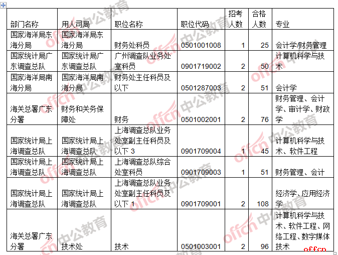 這些職位均不要求考生為服務基層服務人員,均來自中央國家行政機關(本級)或參照公務員法管理事業(yè)單位,不限政治面貌,要求考生學歷為本科以上,無任何備注要求,目前競爭比不足100:1,且面試比例為5:1,機會較高。除了國家旅游局旅游促進與國際合作司高級翻譯與禮賓處科員一職對工作經(jīng)驗無限制以外,其余職位均只要求2年基層工作經(jīng)歷,且這些職位覆蓋了法律、經(jīng)濟學、中文、財務、計算機、小語種等范圍較廣的專業(yè),相信符合條件的考生能從這些職位中找到適合自己的職位。