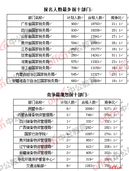 與去年同期最熱部門489:1相比,今年的最熱部門的競爭比達517:1,但是部門的“熱冷不均”趨勢明顯,競爭比排名第十的部門僅有158:1,中公教育專家希望考生保持頭腦清醒,在報考時,不盲目,不盲從,不跟風(fēng)。