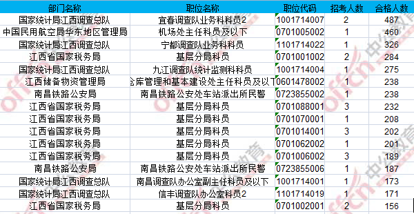 報名通過審核人數(shù)前十的職位主要集中在江西省國家稅務(wù)局、國家統(tǒng)計局江西調(diào)查總隊具體信息如下: