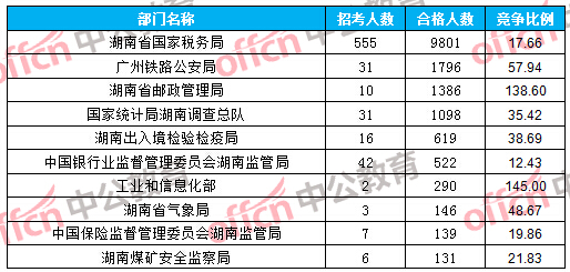 為幫助廣大考生更清晰的了解今日報名情況,湖南中公網(wǎng)校整理了審核通過人數(shù)前十大部門以及競爭比例最激烈的十大部門,供廣大考生參考: