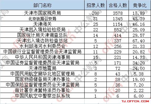 為幫助廣大考生更清晰的了解今日報名情況,天津中公教育整理了審核通過人數(shù)前五位的部門以及競爭比例最激烈的五大部門,供廣大考生參考:
