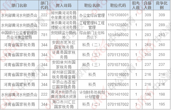 截止22日8時,招錄比例的職位為鄭州黃河河務局中牟黃河河務局辦公室綜合管理一職,招錄1人,截止22日8時通過人數(shù)為309人。
