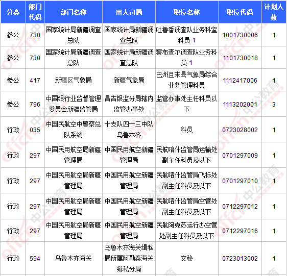 報(bào)名通過(guò)審核人數(shù)前十的職位主要集中在新疆維吾爾自治區(qū)國(guó)家稅務(wù)局、新疆儲(chǔ)備物資管理局、烏魯木齊鐵路公安局部門,具體信息如下: