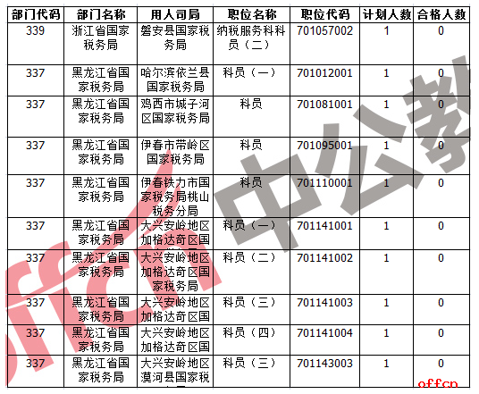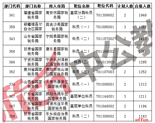 2017國考國稅系統(tǒng)37個(gè)部門共提供9455個(gè)職位,招錄17476人。截至24日17:30,總報(bào)名審核通過人數(shù)為756571人,競爭比例為43:1,仍有10個(gè)職位無人報(bào)考,在這10個(gè)職位中有9個(gè)來自黑龍江省國稅系統(tǒng),剩下的一個(gè)來自浙江省國家稅務(wù)系統(tǒng)。下面是中公網(wǎng)校統(tǒng)計(jì)的國稅系統(tǒng)報(bào)名情況,供考生參考: