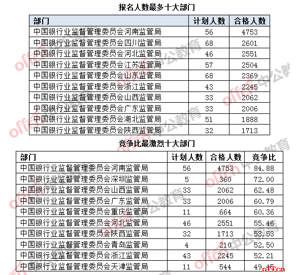 2017國考報(bào)名結(jié)束:銀監(jiān)會(huì)過審43066人 平均競爭比36.5:1