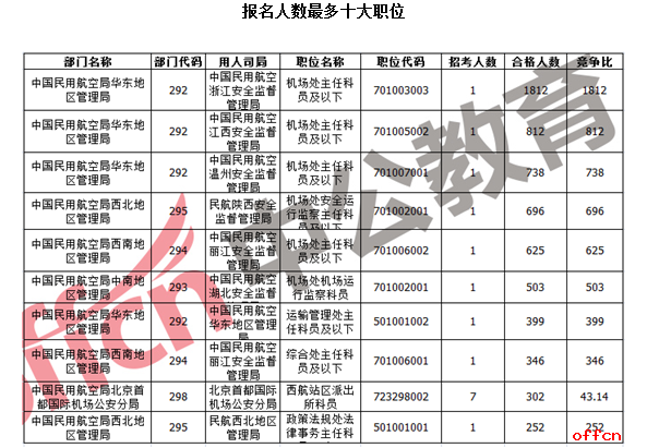 2017國(guó)考報(bào)名結(jié)束:民用航空管理局過(guò)審11441人 平均競(jìng)爭(zhēng)比53:1