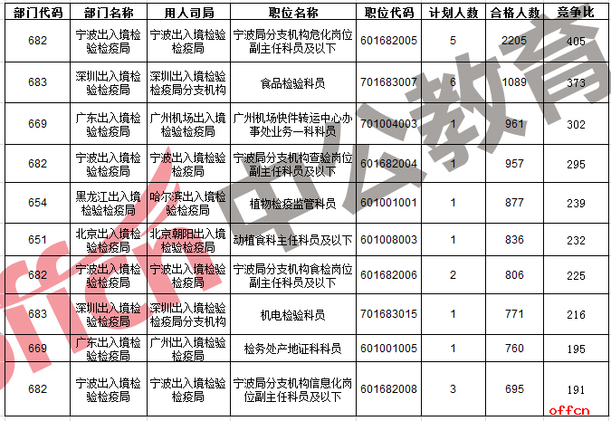 2017國考報(bào)名結(jié)束:出入境檢驗(yàn)檢疫過審81694人 平均競爭比91:1